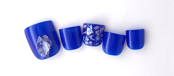 遊び心あふれるシューズに合わせた鮮やかなカラーのネイルが目に留まる足元を演出します。