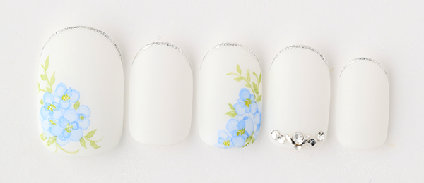 ウエディングアクセサリーのようなモチーフ。ホワイトカラーにパールラメを合わせて、お手元を華やかに。