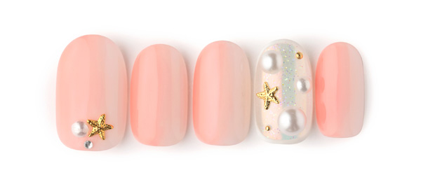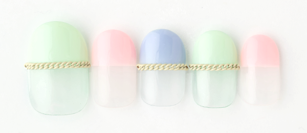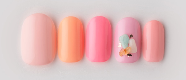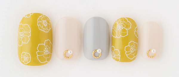 春めくカラーで爪先にドローイング。形にスタッフの個性がでます。