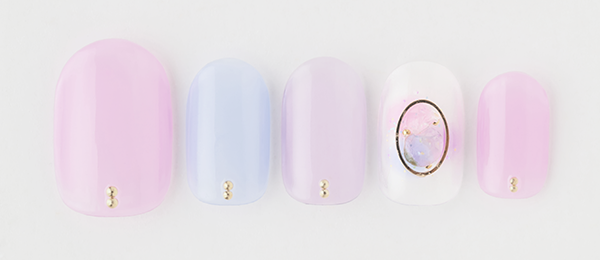 少し透け感のあるピュアなパステルピンクに、さりげないシェルの輝きをプラス。マグネットで抜け感を出して。