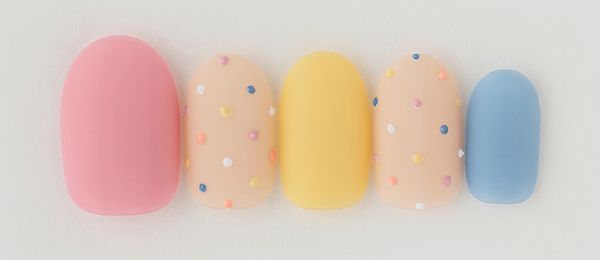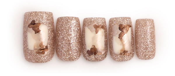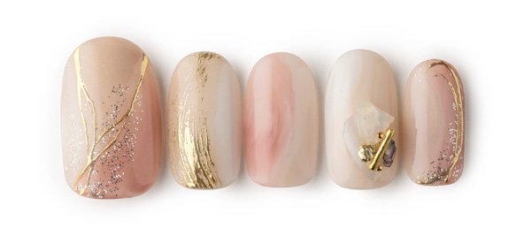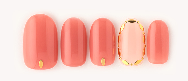 シェルを花びらのようにあしらったデザイン。リップのような2色のピンクで色づく指先に