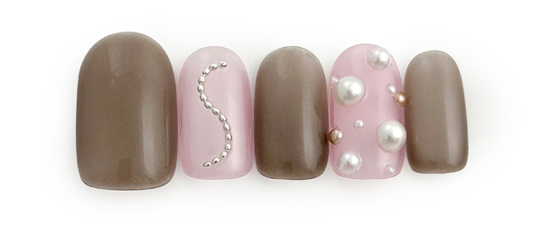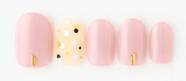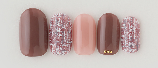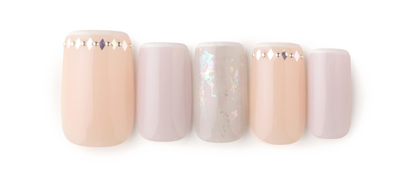 全てマットで仕上げたピンク&ベージュネイル。コンサバになりすぎないようスタッズでクールなアクセントを。