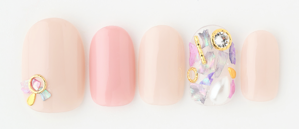 マグネットジェルにシェルの光が相まって春の日差しに映えるデザイン。