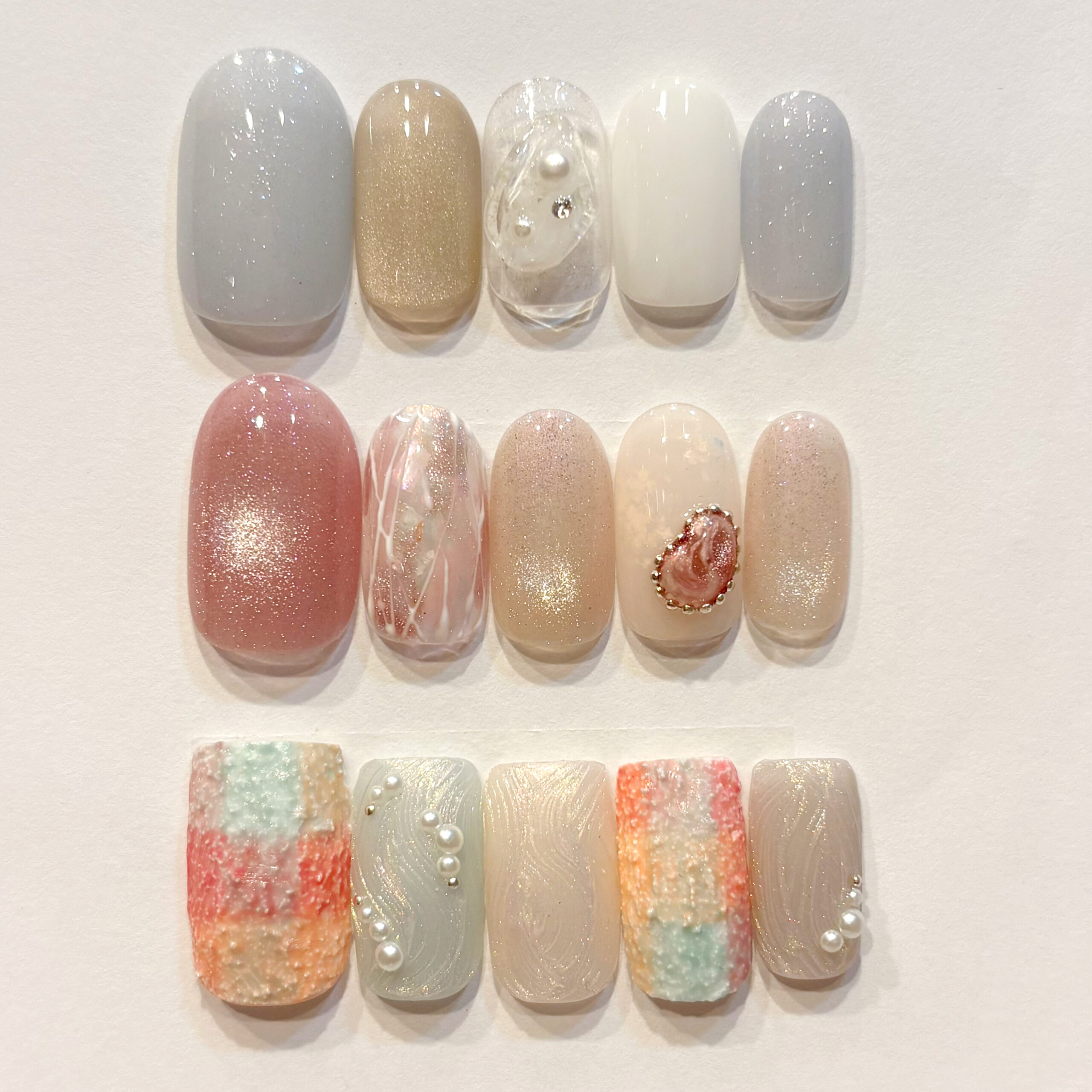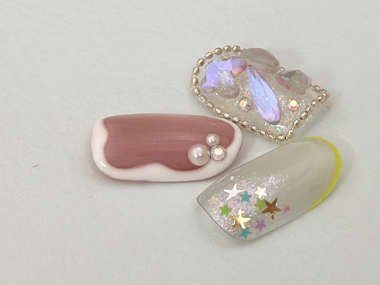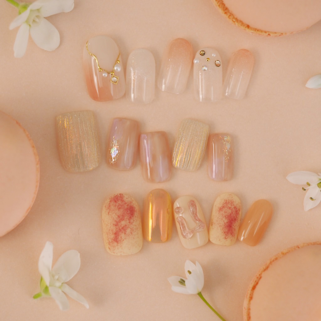3〜5月定額おすすめデザイン 定額おすすめデザインを更新しました。 【2026年3月1日〜2026年5月31日までの期間限定!】 この春おすすめのデザインをぜひお試しください。 10,800円(税込11,880円)、11,800円(税込12,980円)、12,800円(税込14,080円)、の3種類から選べます。 デザインはTOPページ( tricia.mom )をご確認ください。 ※ツヤコーティング(¥1,650)仕上げです。 ※カラーチェンジご相談可能です。 ※ジェルのオフ代は1本につき¥220です。(フィルイン、他店オフは1本¥330) ※他の割引と併用はできません。