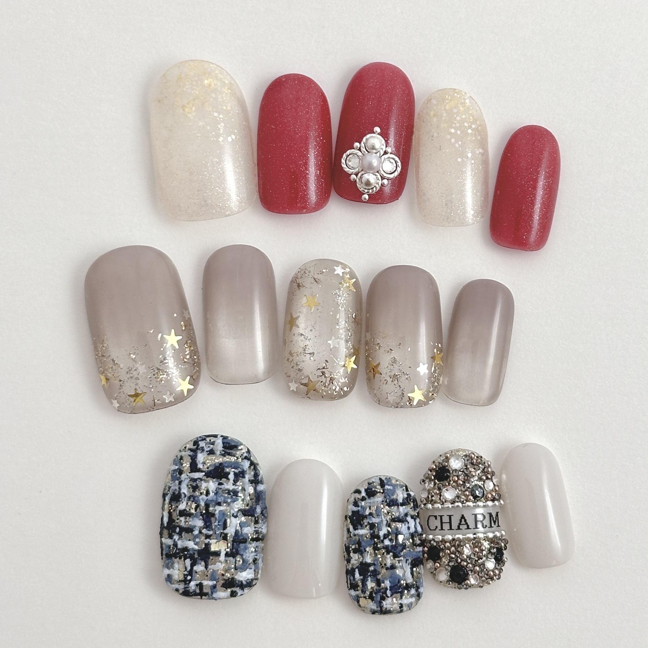 12〜2月定額おすすめデザイン 定額おすすめデザインを更新しました。 【2025年12月1日〜2026年2月28日までの期間限定!】 この冬おすすめのデザインをぜひお試しください。 10,800円(税込11,880円)、11,800円(税込12,980円)、12,800円(税込14,080円)、の3種類から選べます。 デザインはTOPページ( tricia.mom )をご確認ください。 ※ツヤコーティング(¥1,650)仕上げです。 ※カラーチェンジご相談可能です。 ※ジェルのオフ代は1本につき¥220です。(フィルイン、他店オフは1本¥330) ※他の割引と併用はできません。