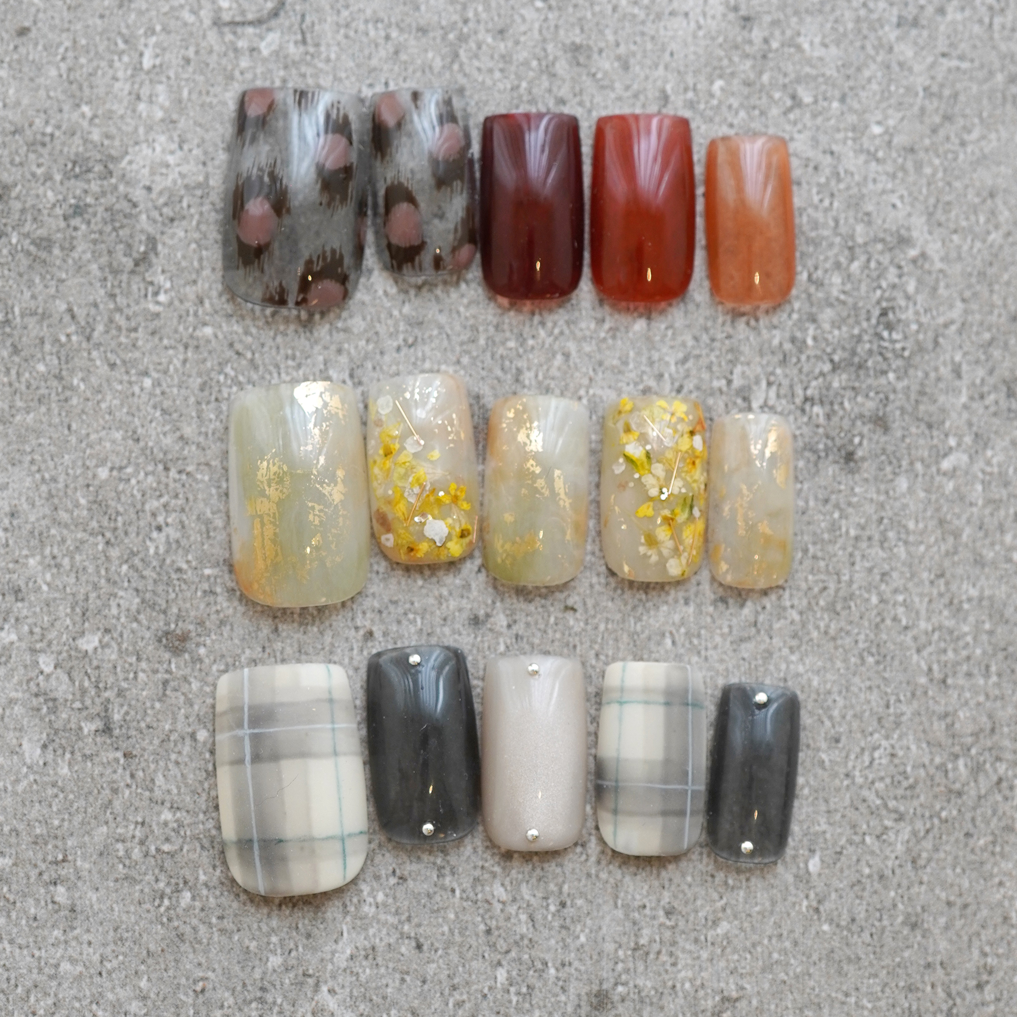 9〜11月定額おすすめデザイン 定額おすすめデザインを更新しました。 【2023年9月1日〜2023年11月30日までの期間限定!】 この秋おすすめのデザインをぜひお試しください。 9,800円(税込10,780円)、10,800円(税込11,880円)、11,800円(税込12,980円)の3種類から選べて、カラーチェンジもOKです。 デザインはTOPページ( tricia.mom )をご確認ください。 ※ツヤコーティング(¥1,500)仕上げです。 ※お好きなカラーに変更できます。 ※オフ代は1本につき¥200です。 ※他の割引と併用はできません。